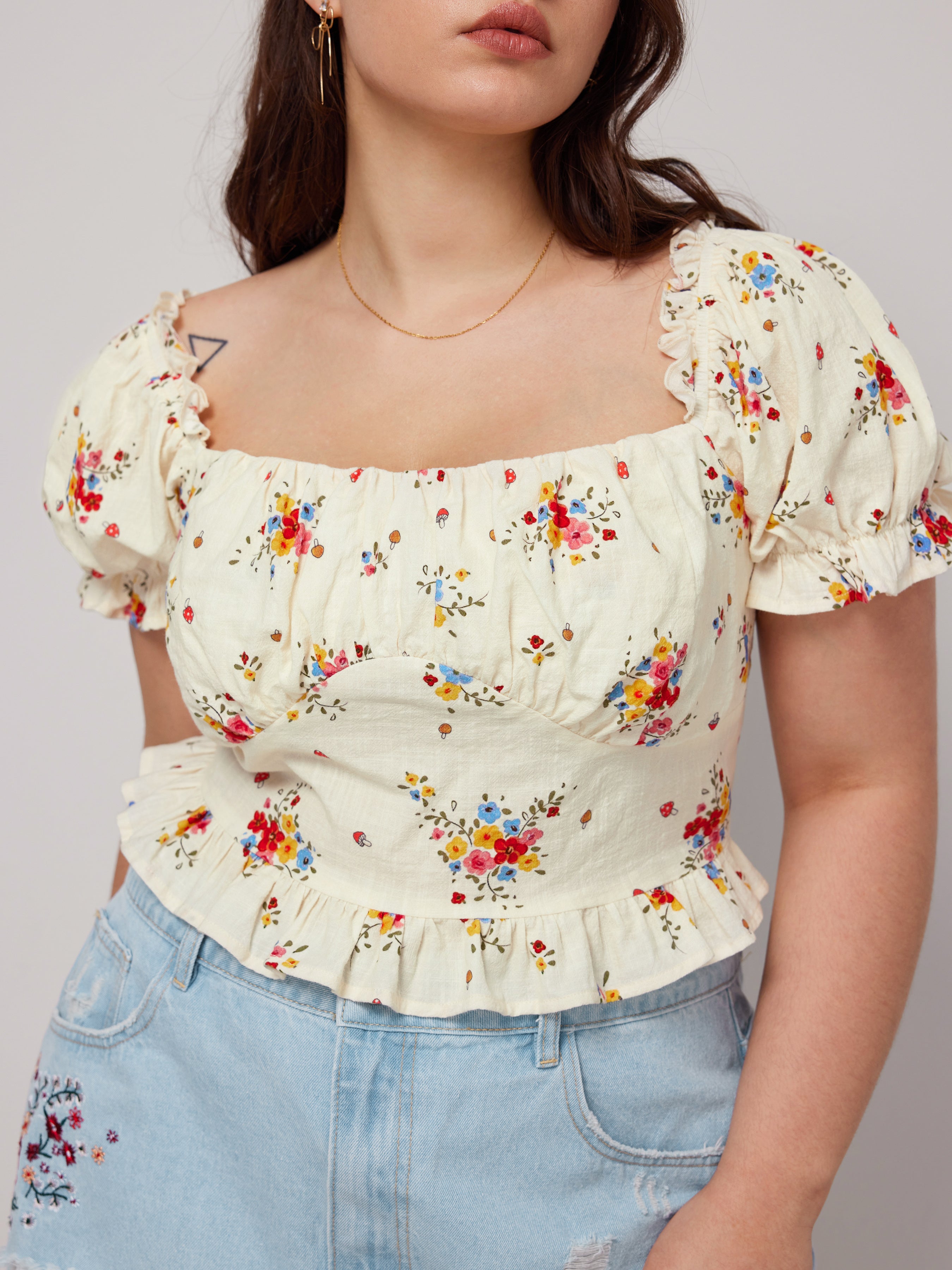 Floral Ruffle Hem Short Sleeve Blouse Curve & Plus
