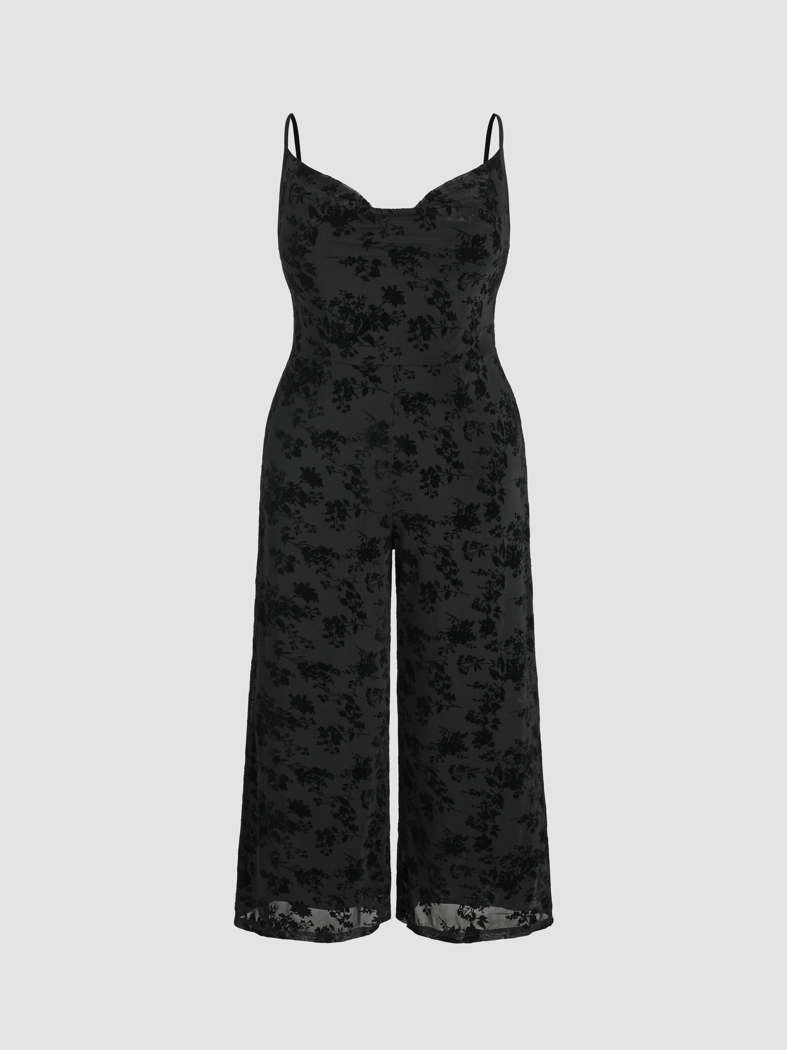 Jacquard Cowl Neck Floral Wide Leg Jumpsuit Curve & Plus