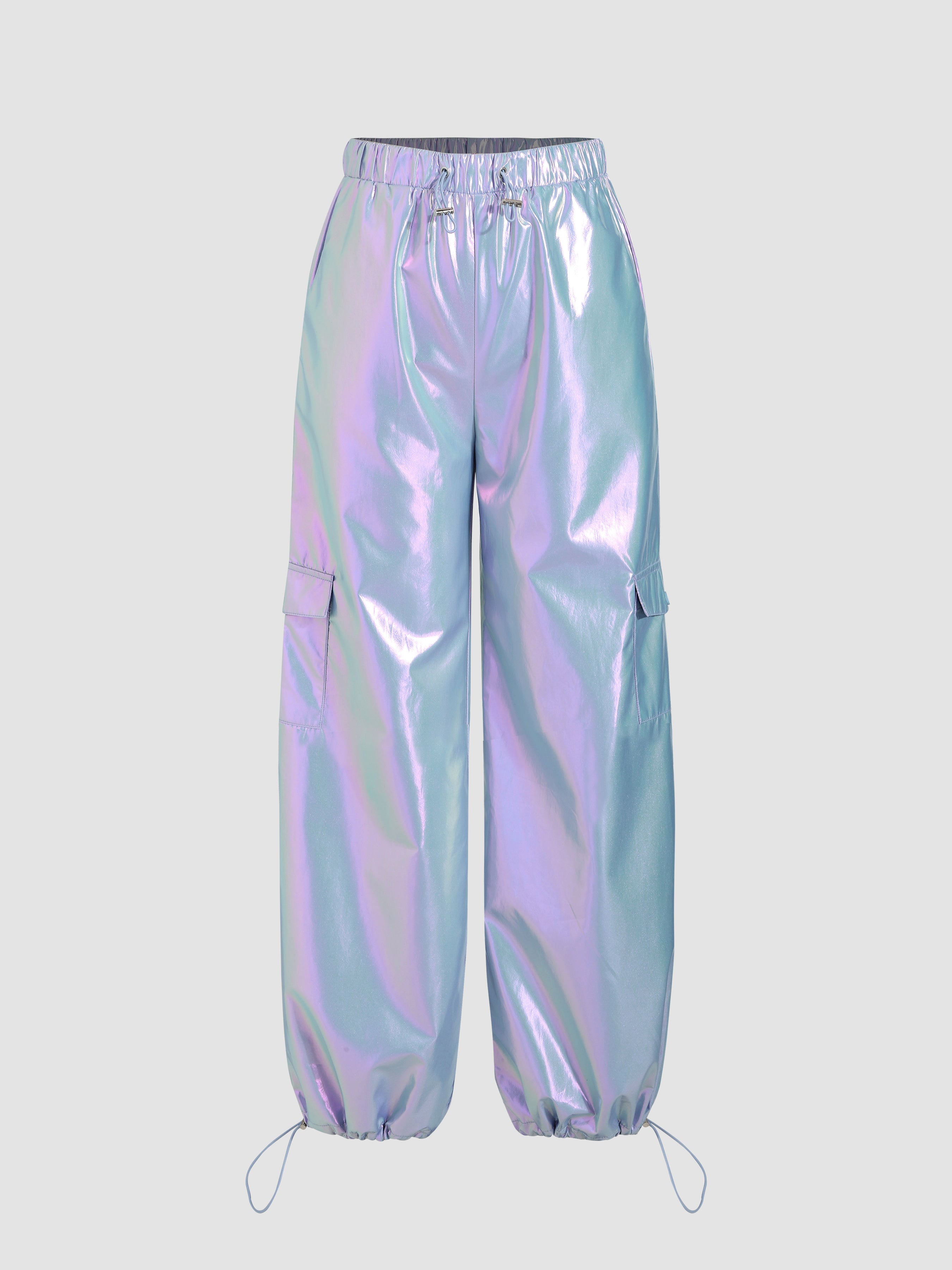 Metallic Mid Waist Parachute Cargo Pants