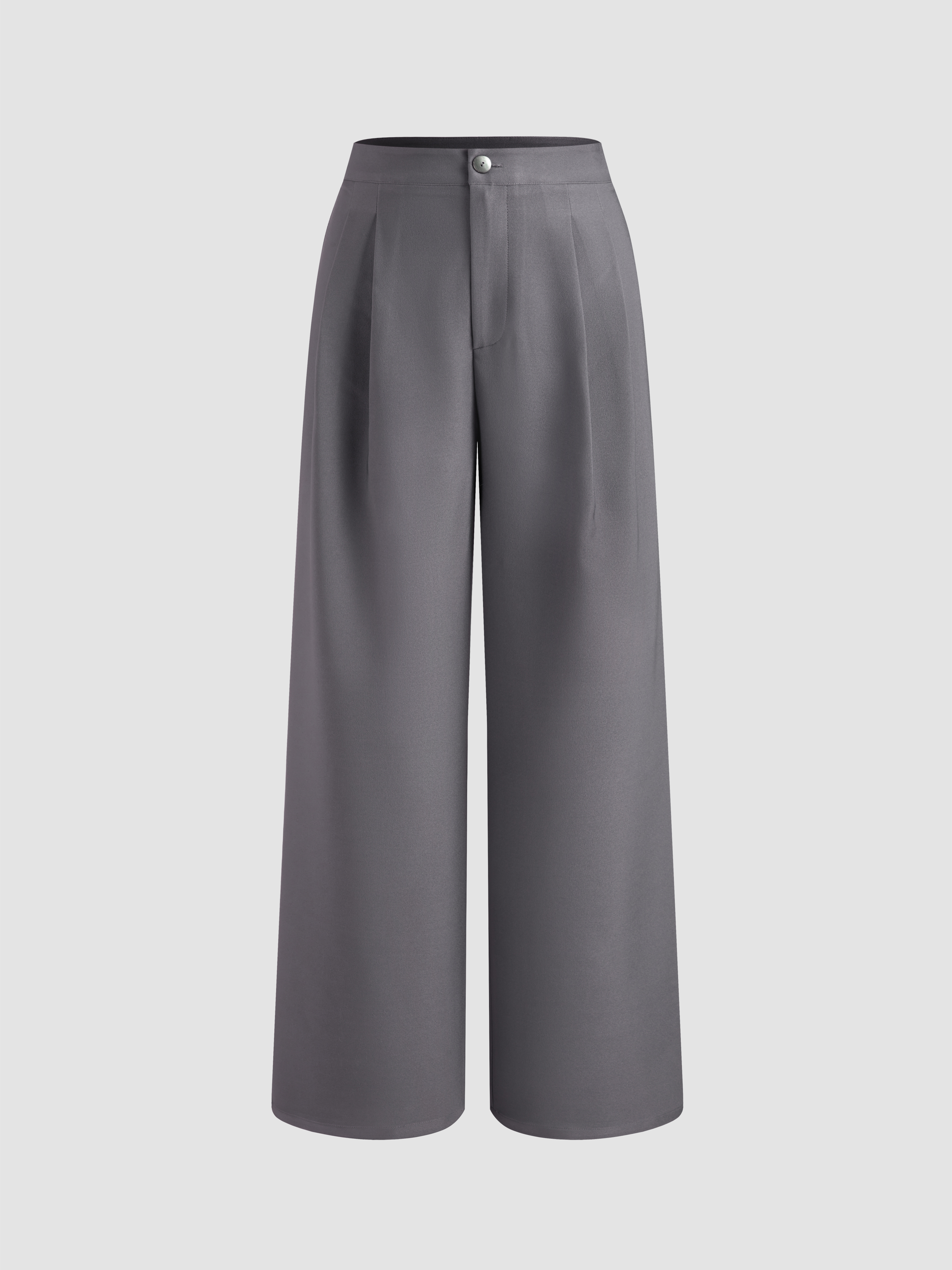 Mid Rise Solid Button Straight Leg Trousers