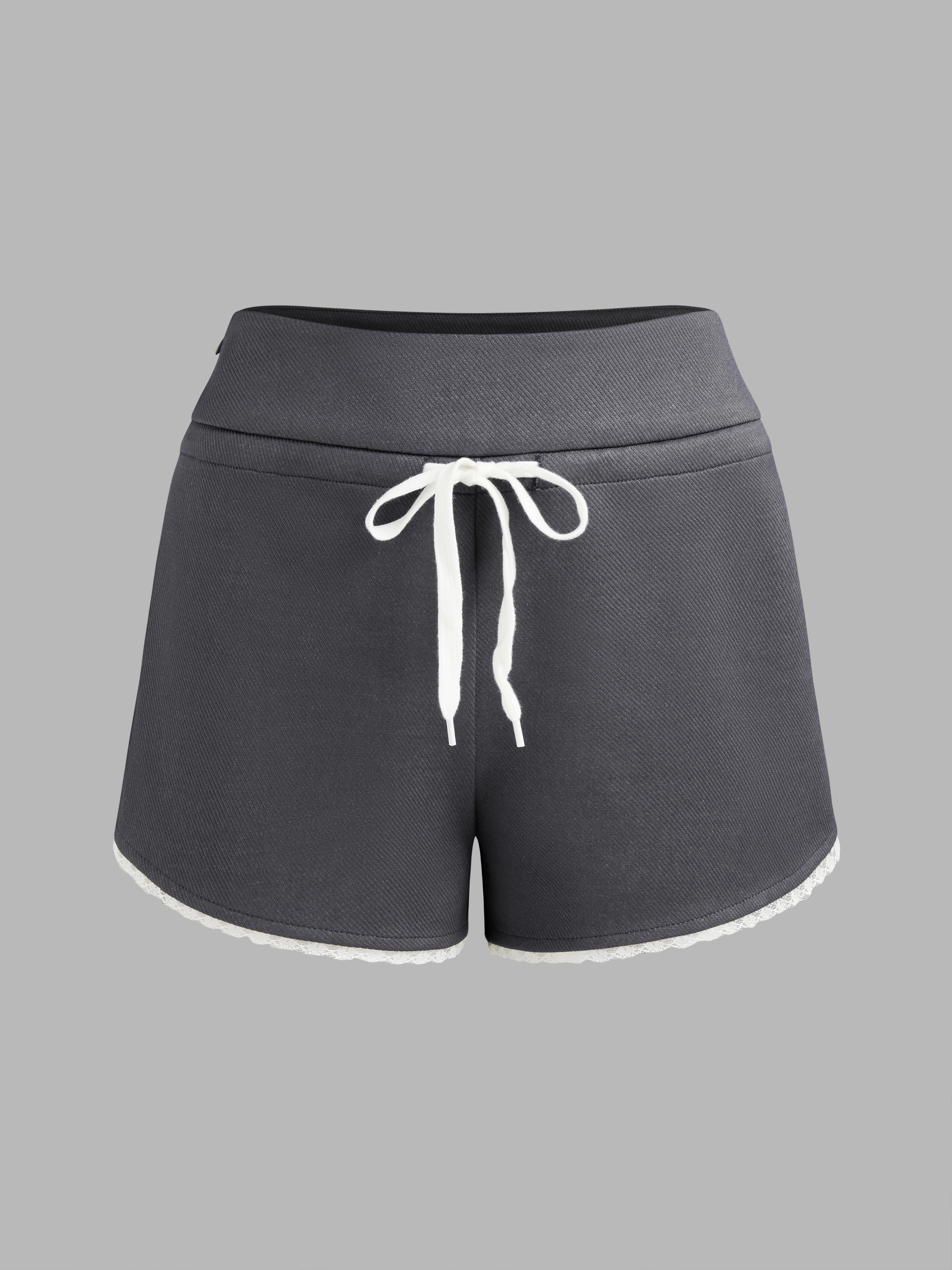 Mid Rise Solid Knotted Contrasting Lace Shorts