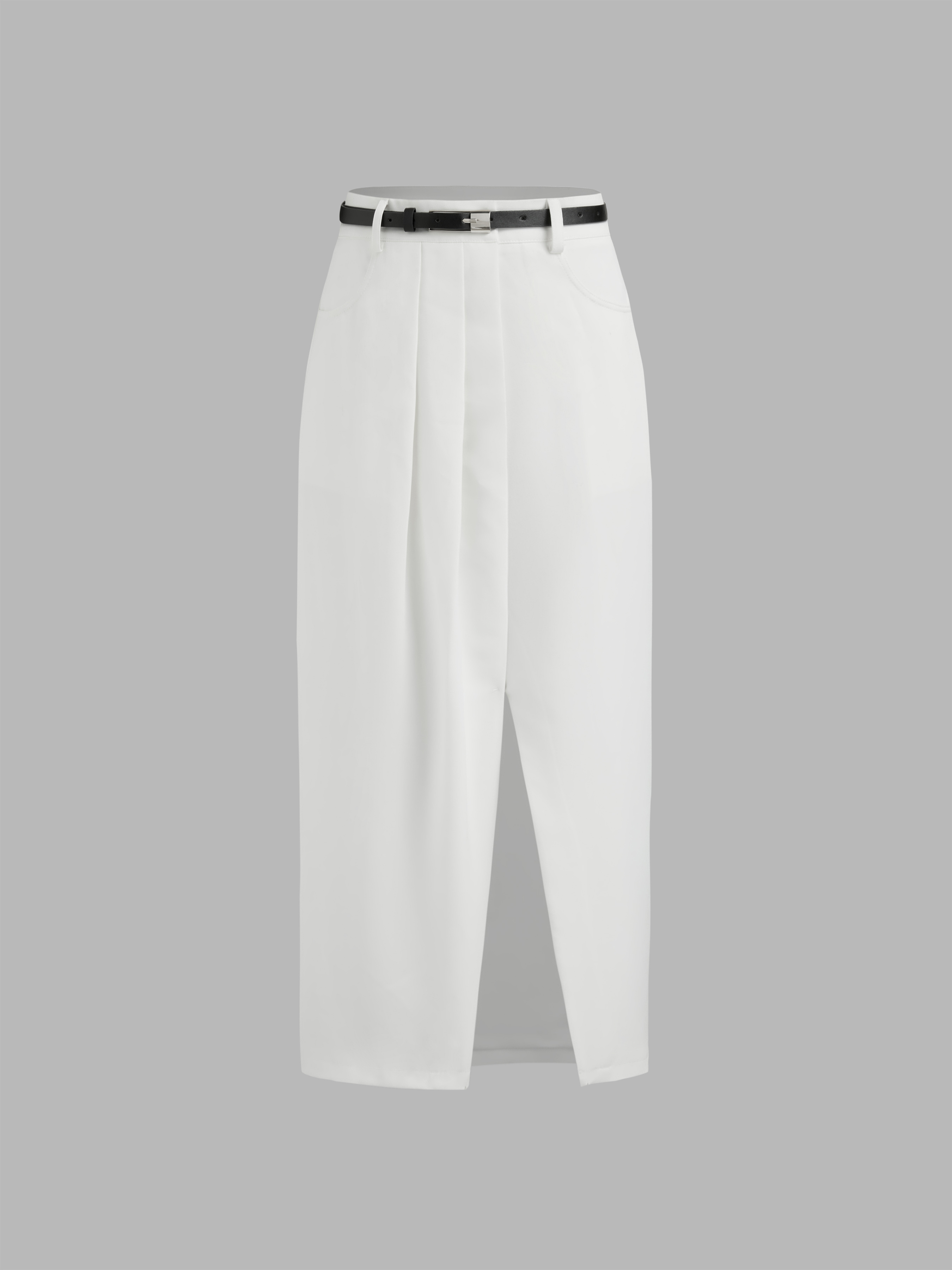 Mid Rise Solid Split Pocket Maxi Skirt With Belt