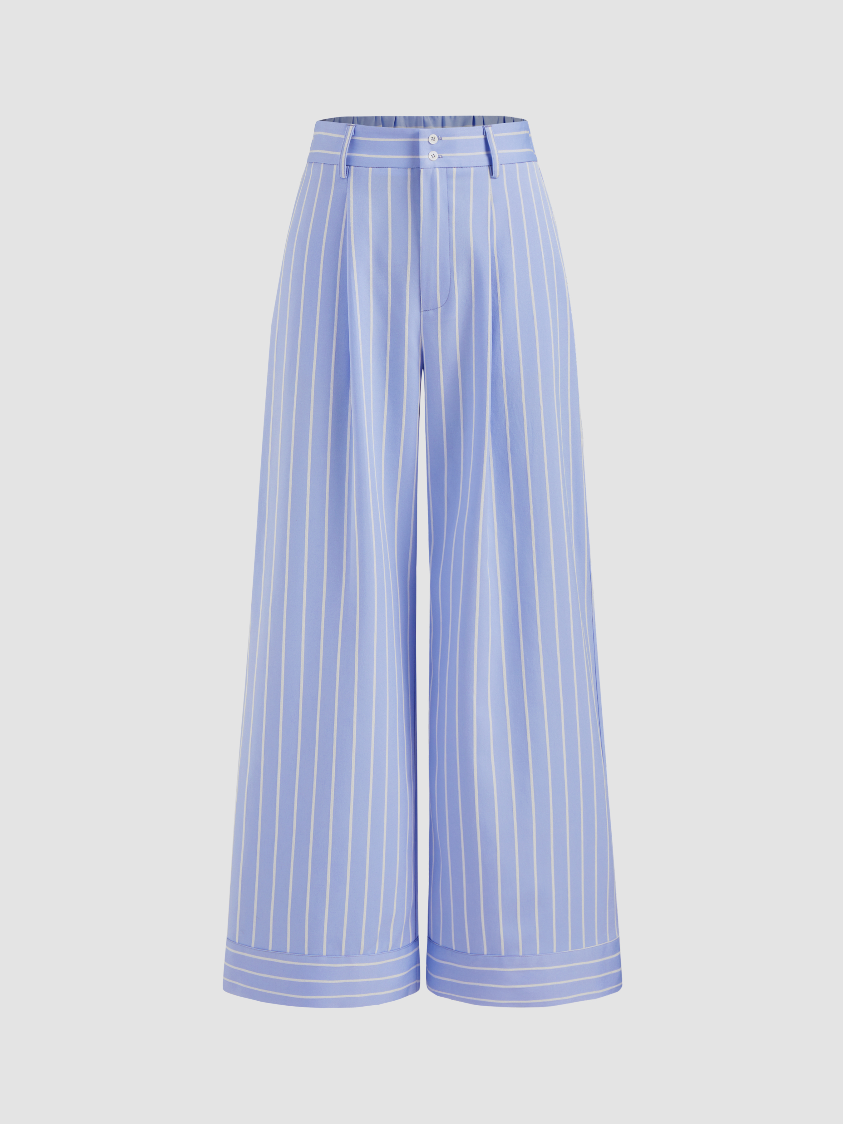 Mid Rise Striped Pocket Straight Leg Trousers
