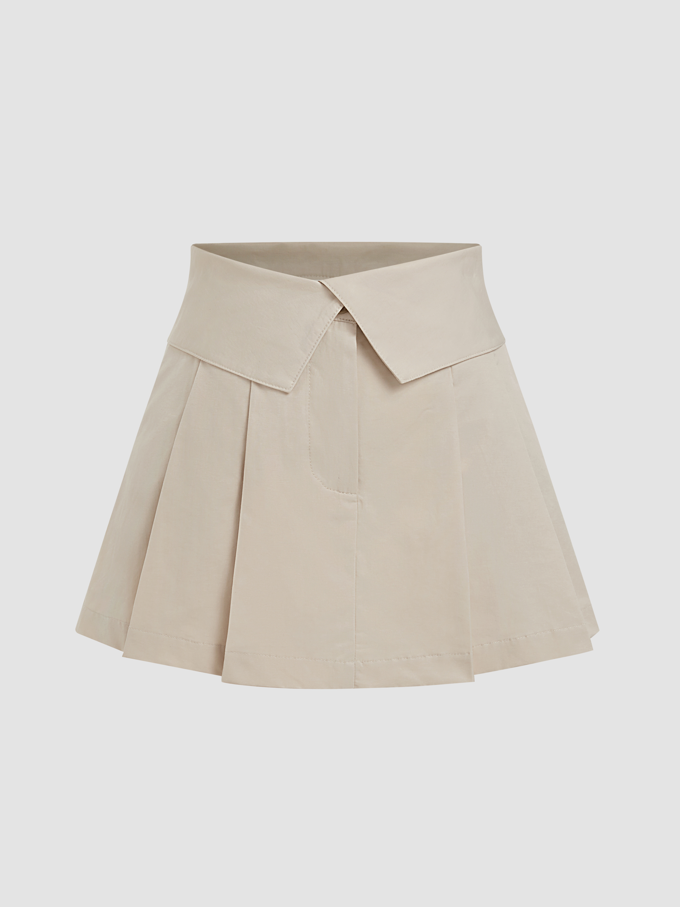 Middle Waist Fold Pleated Pocket Mini Skirt