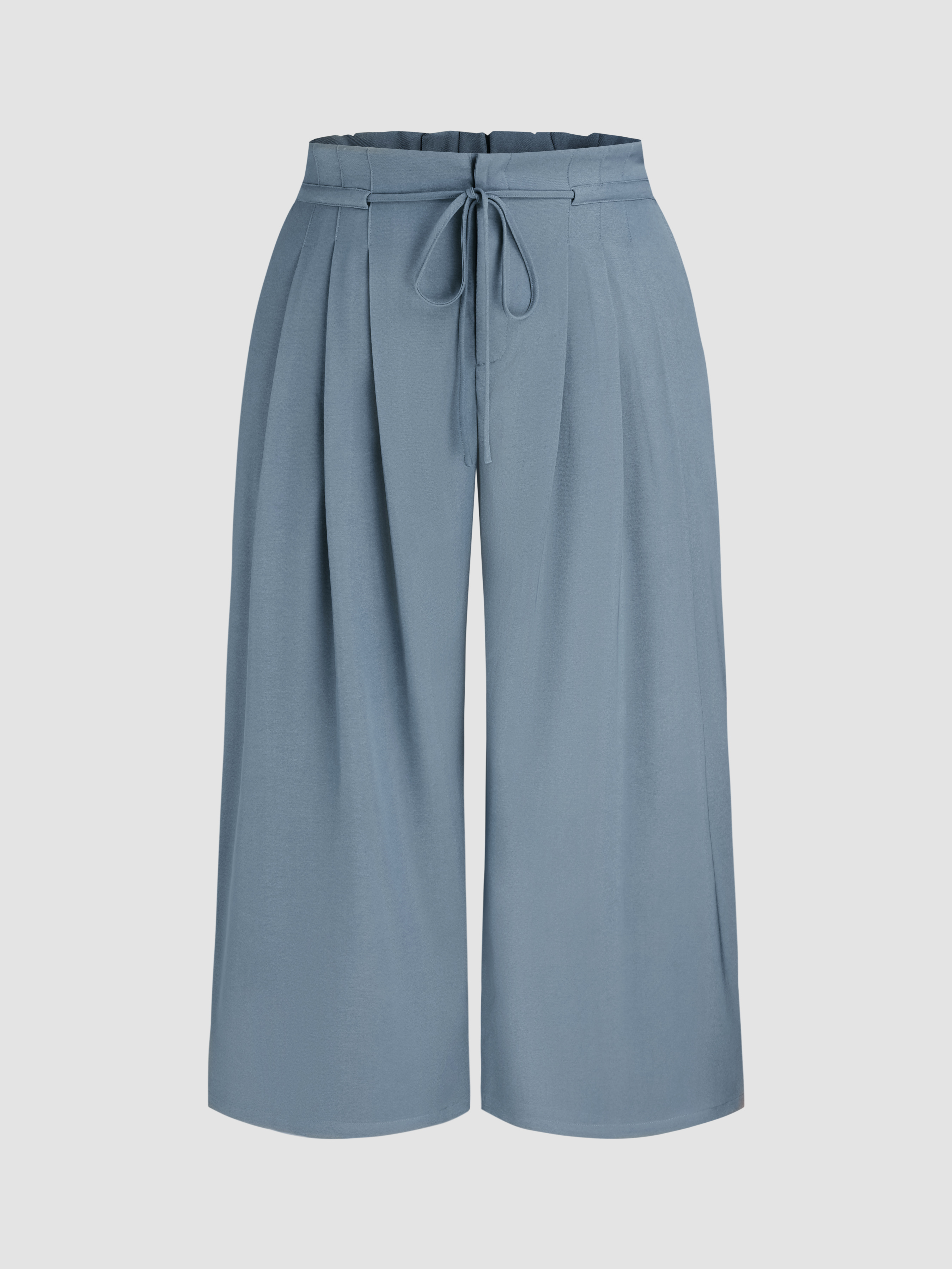Middle Waist Pleated Drawstring Wide Leg Trousers Curve & Plus