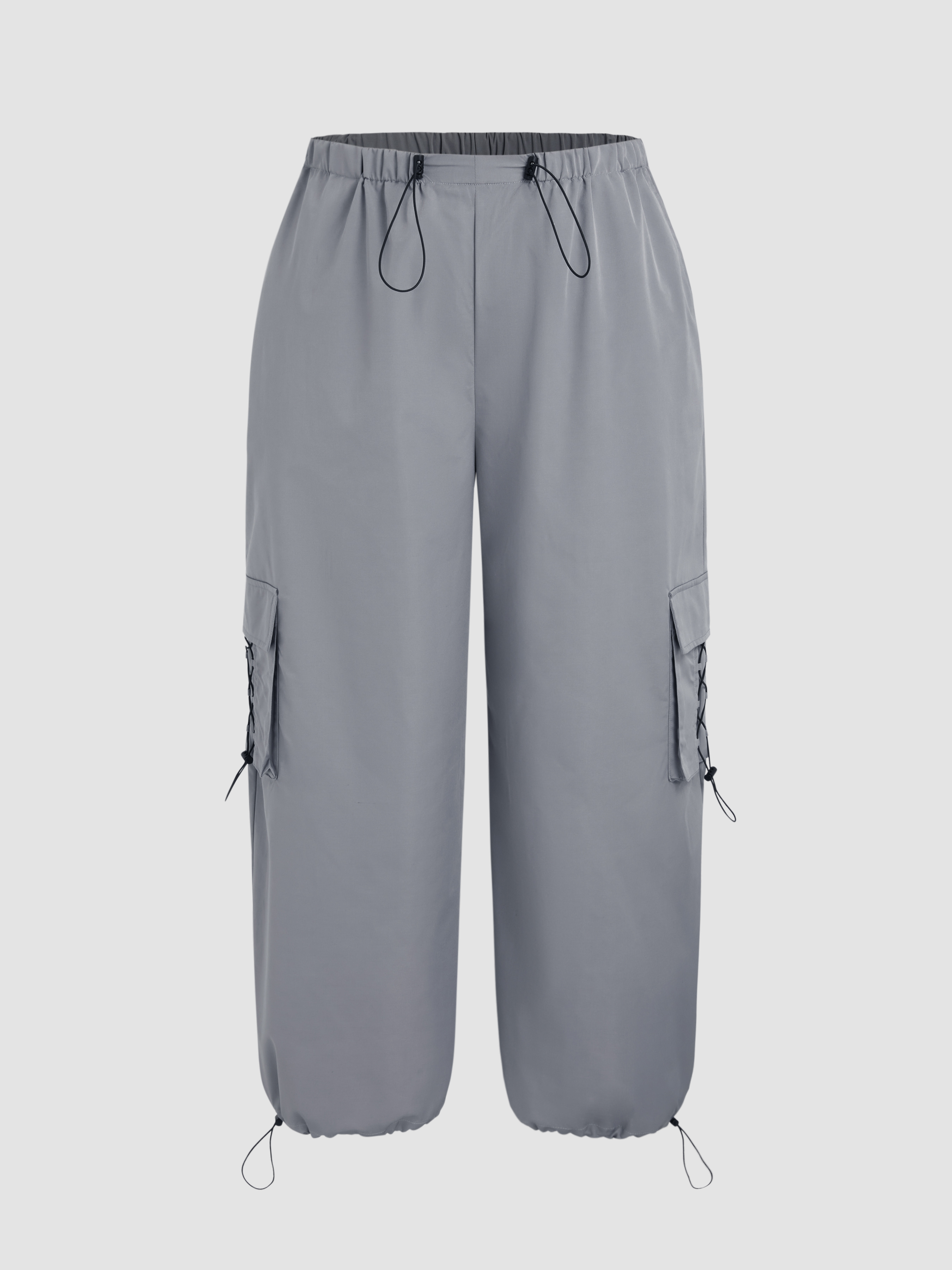 Middle Waist Solid Pocket Drawstring Cargo Pants Curve & Plus