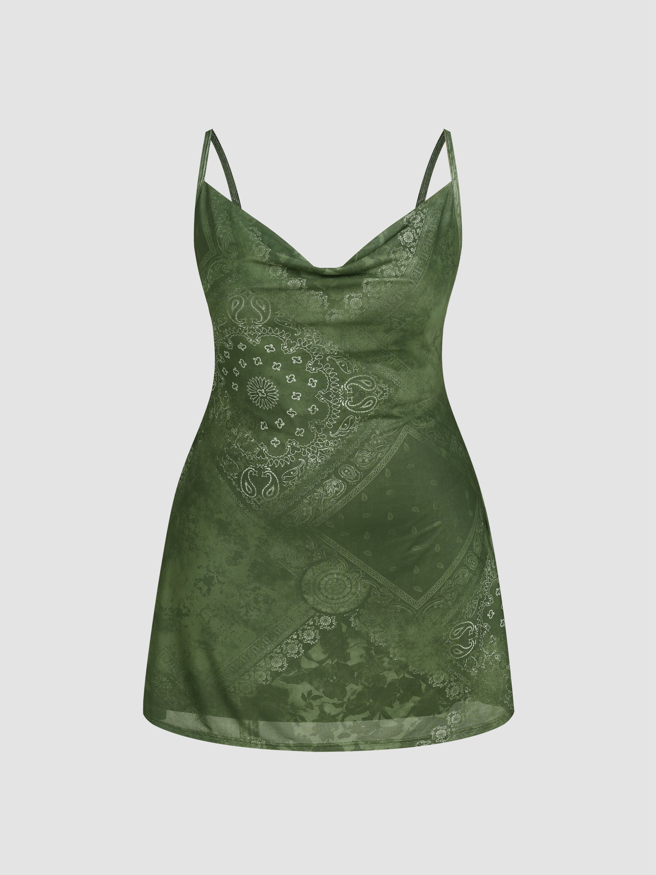 Paisley Cowl Neck Mesh Mini Dress Curve & Plus