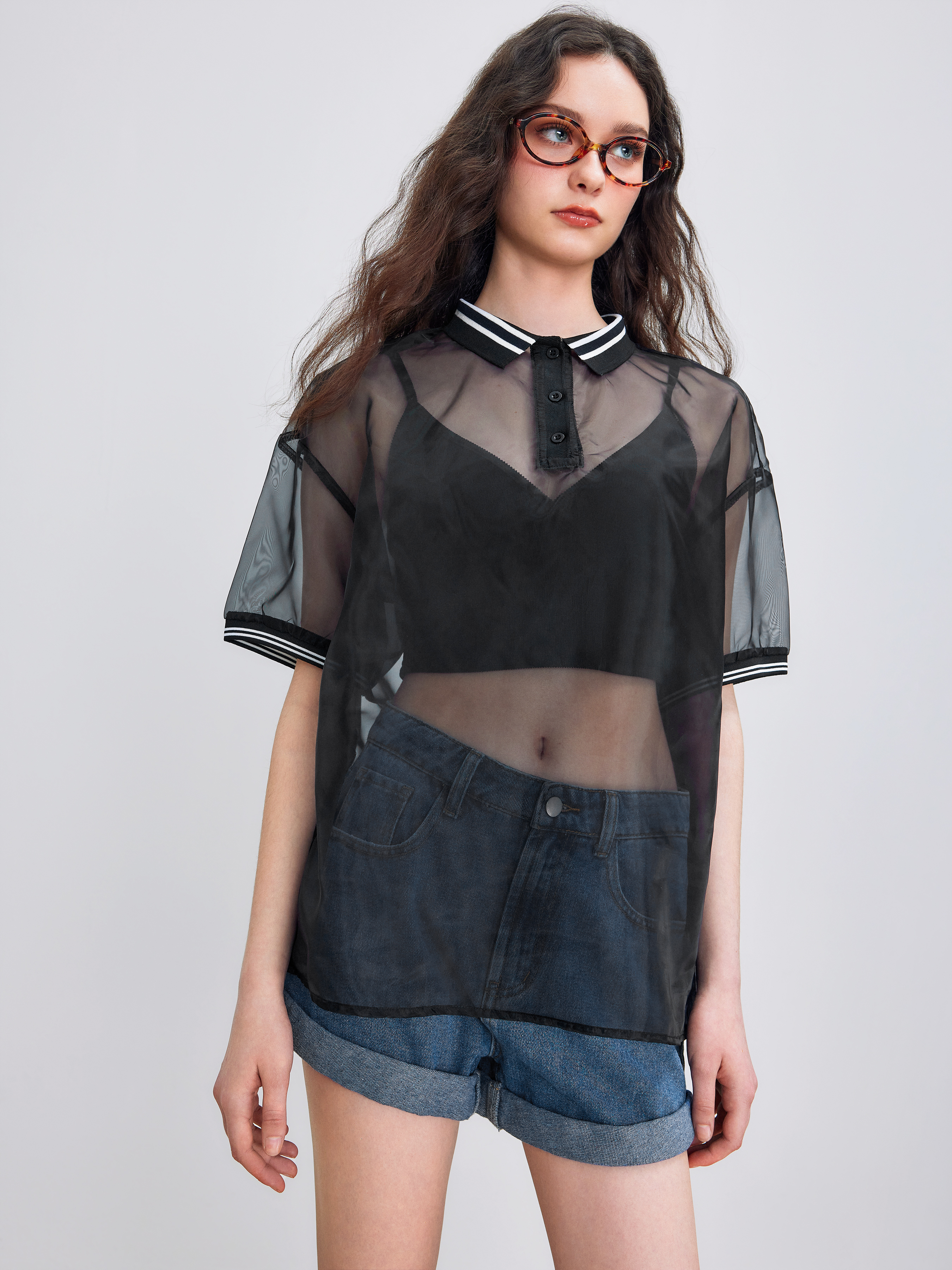 Polo See-through Solid Short Sleeve Shirt