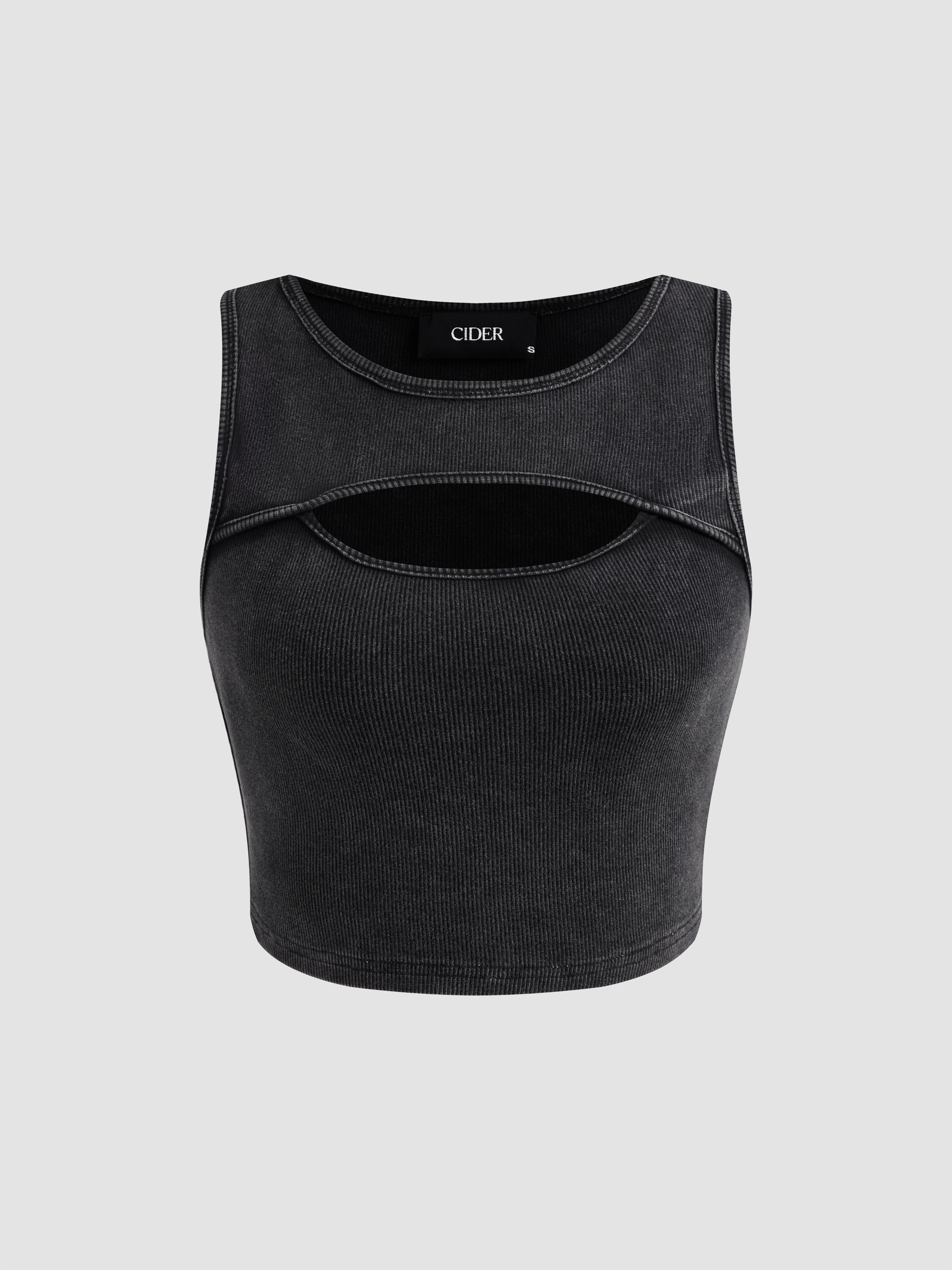 Round Neck Solid Cut Out Crop Tank Top