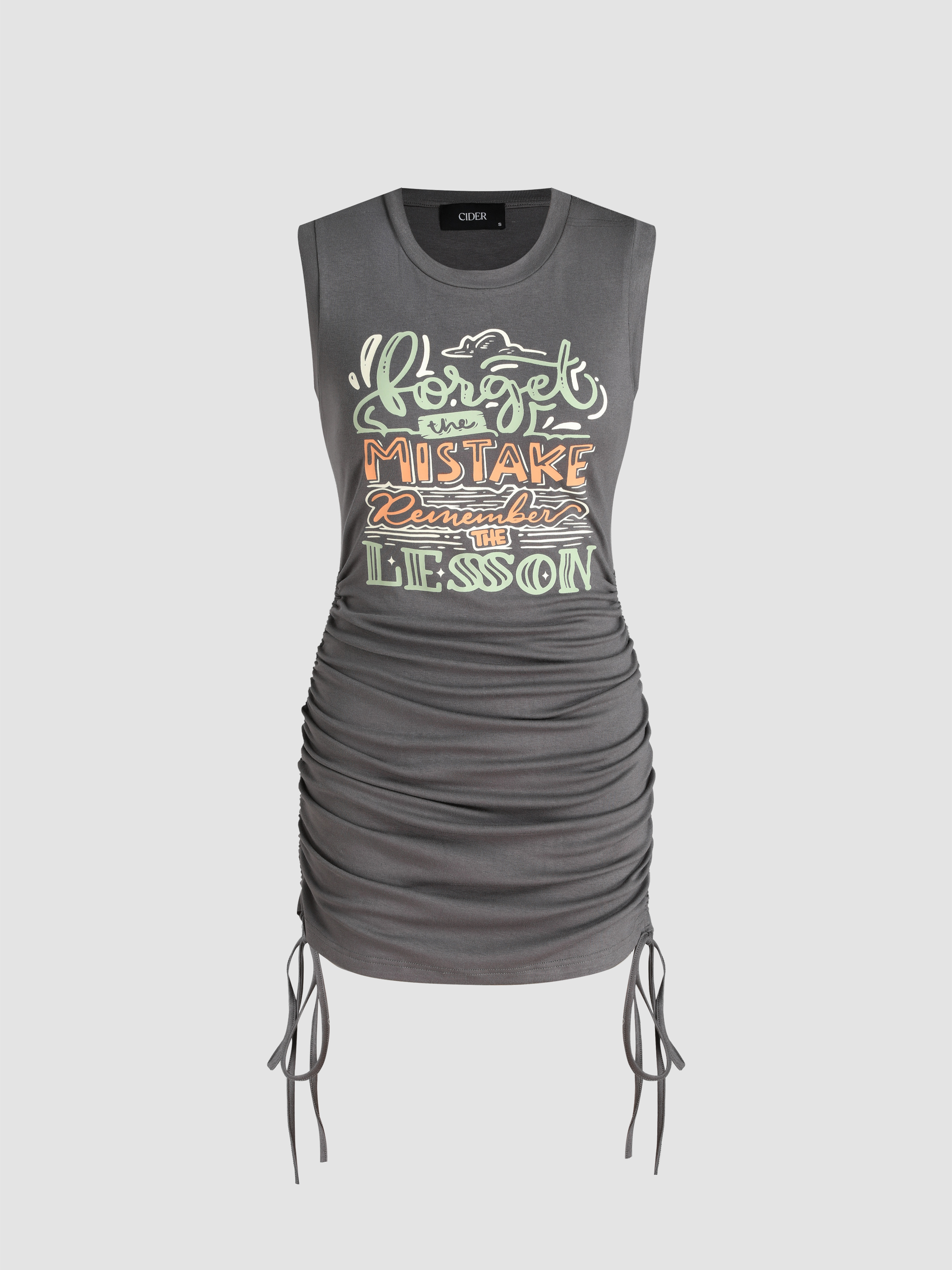 Round Neckline Graphic Drawstring Tank Mini Dress