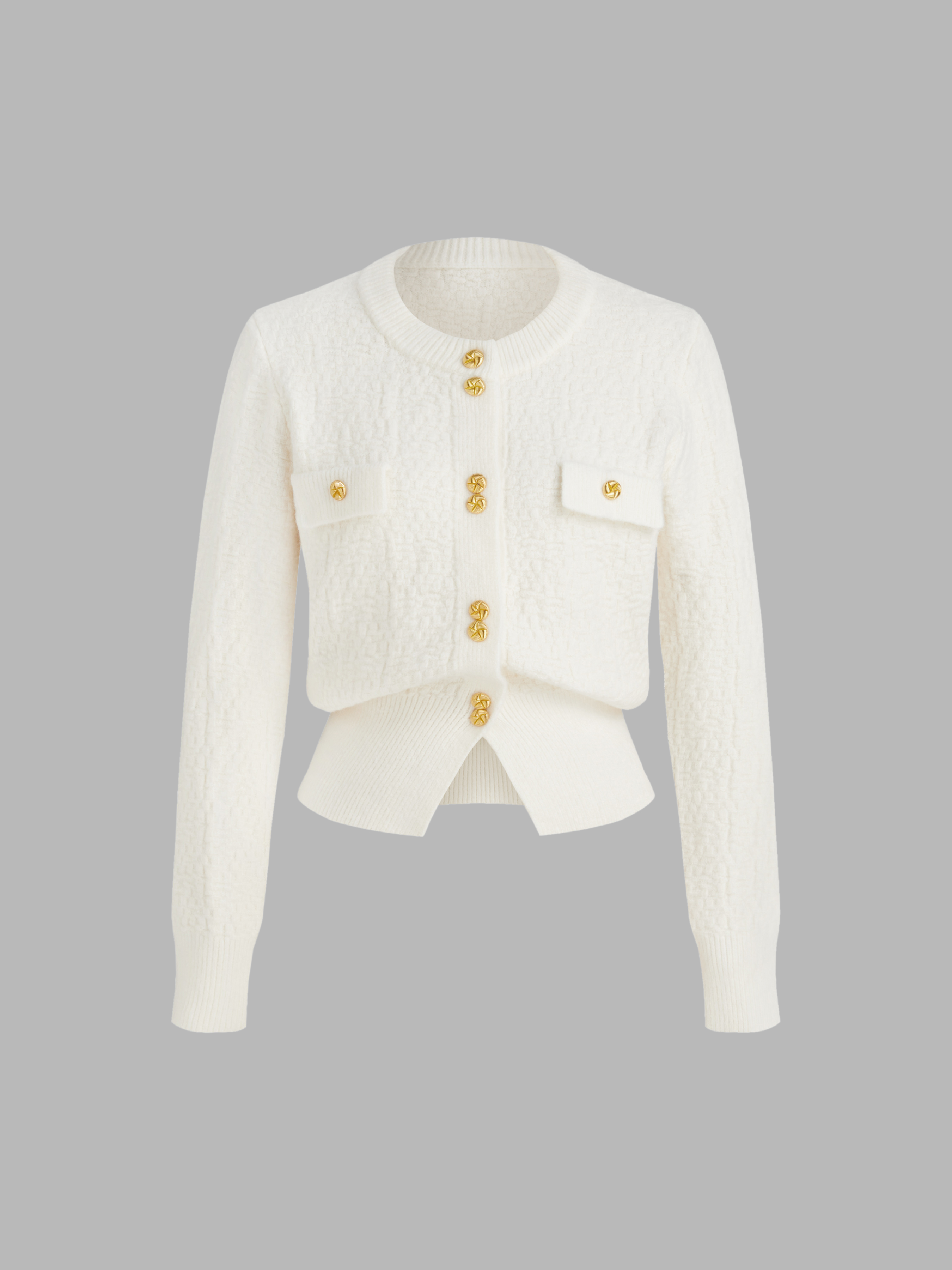 Round Neckline Solid Cardigan