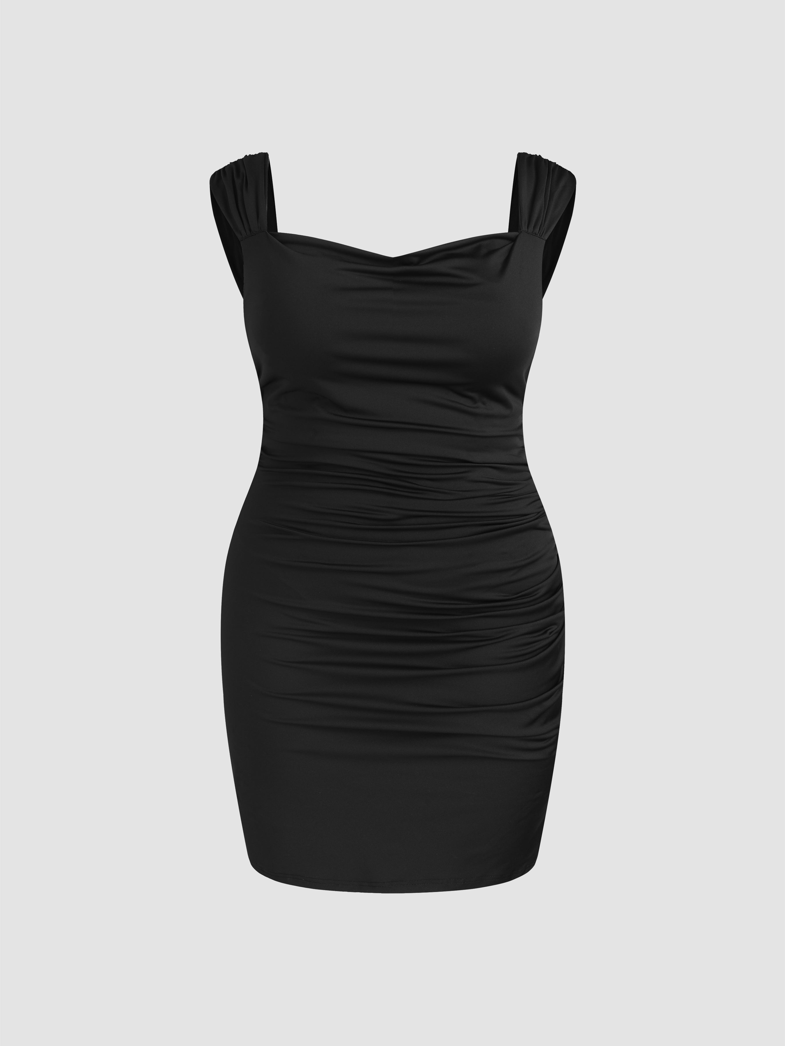 Ruched Split Cowl Neck Mini Dress Curve & Plus