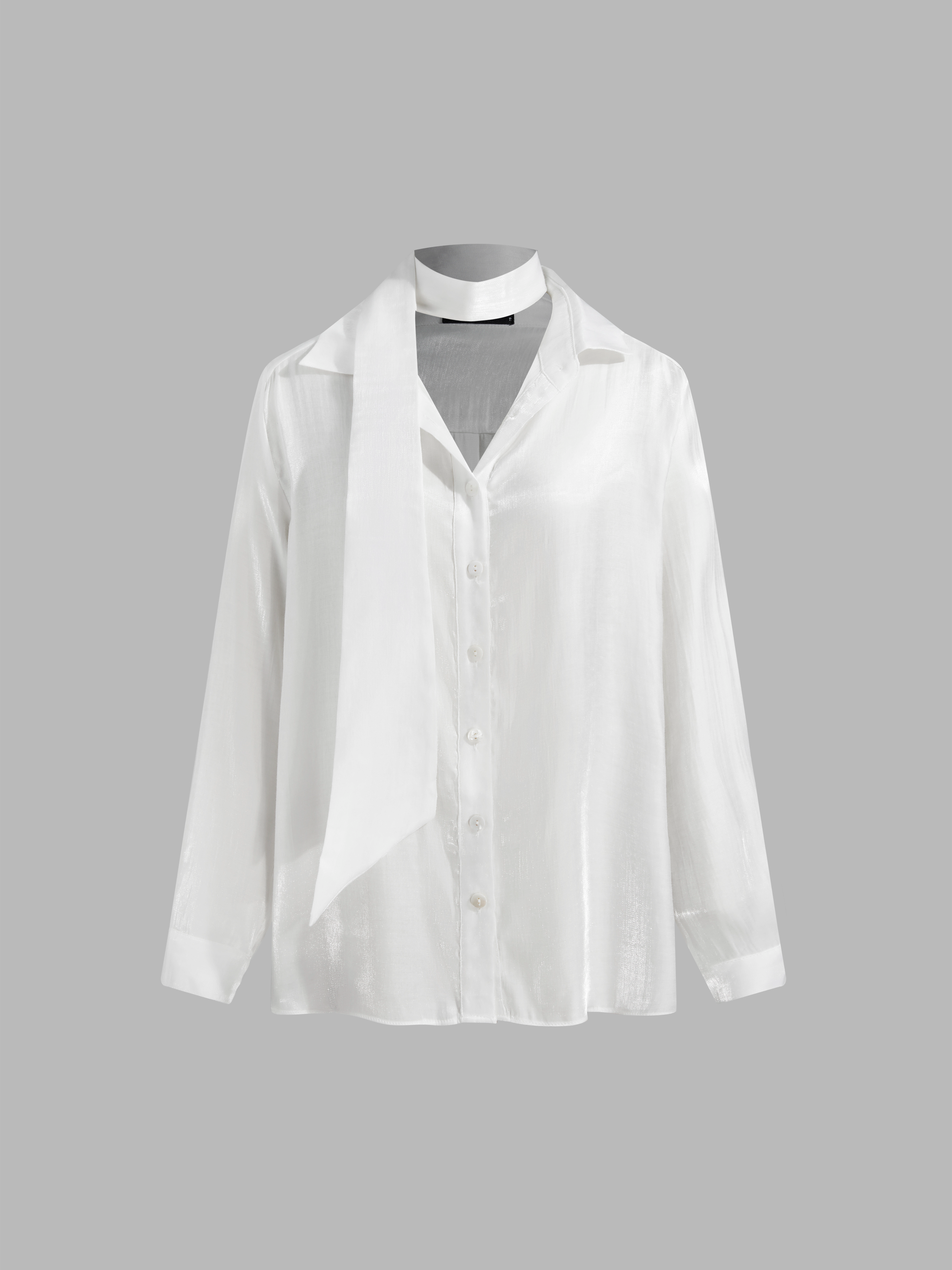 Satin Collar Solid Knotted Long Sleeve Blouse