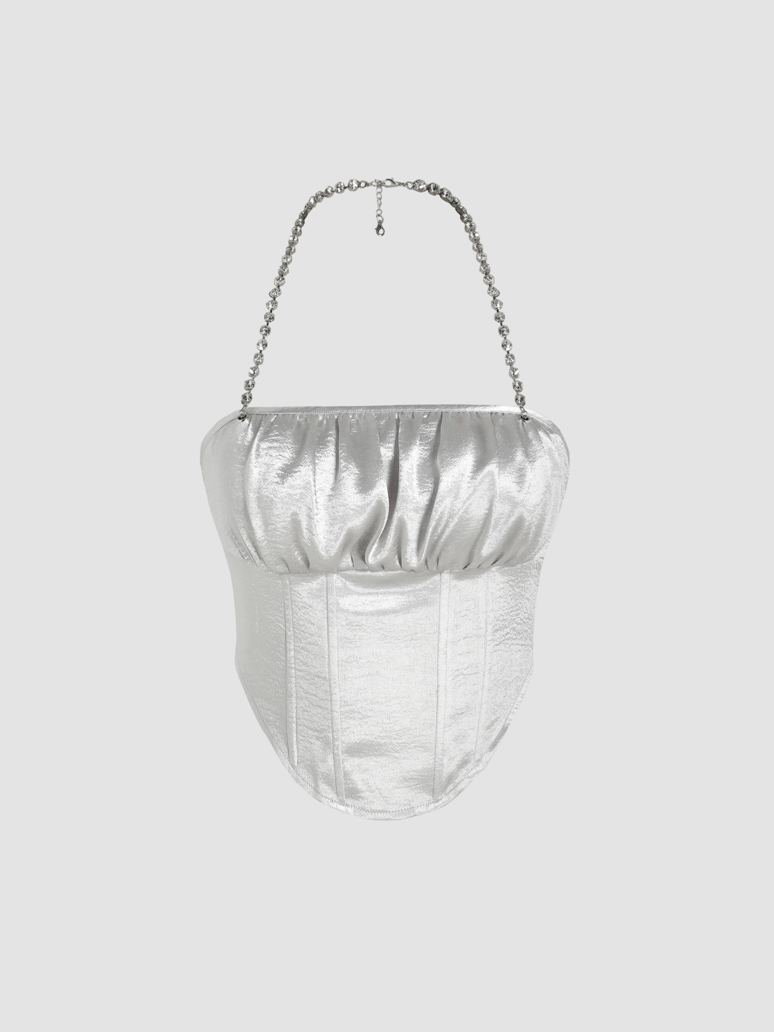 Satin Halter Metallic Rhinestone Detail Corset Crop Top