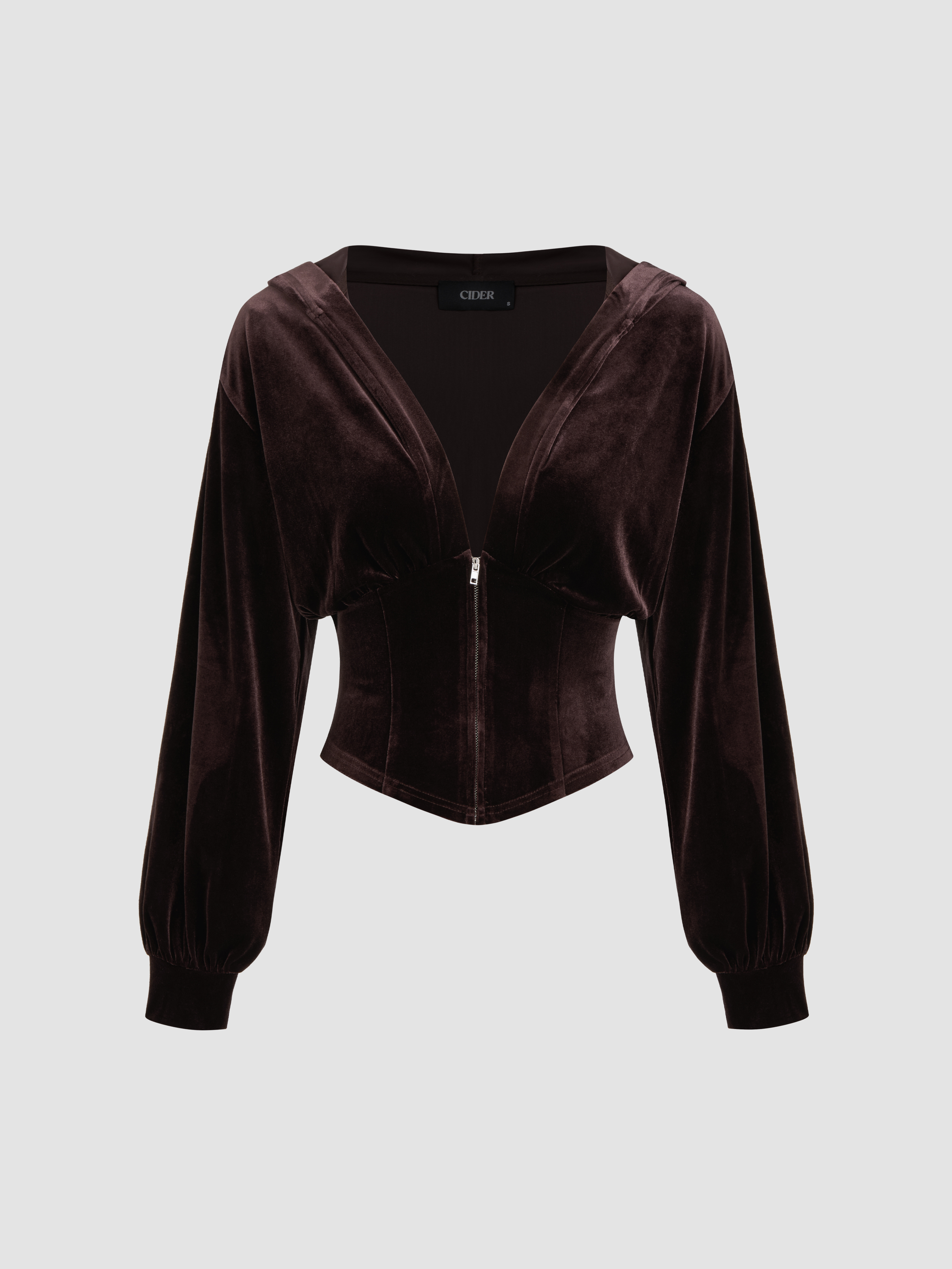 Velvet V-neck Solid Corset Hoodie