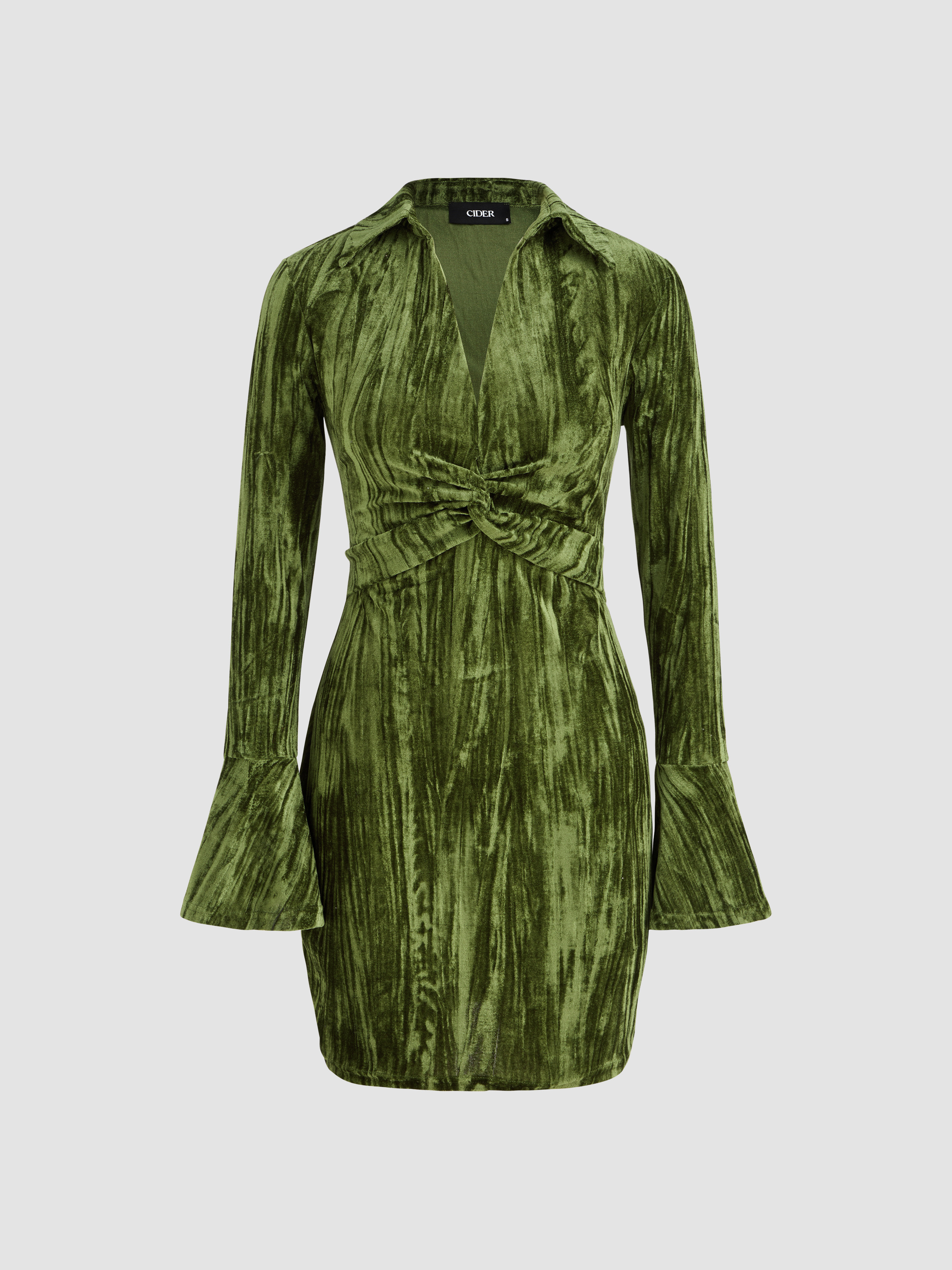Velvet V-neck Twist Bell Sleeve Mini Dress