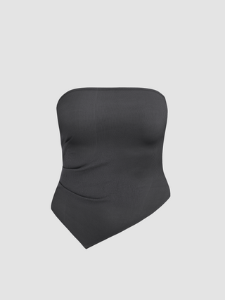 Rib Strapless Asymmetrical Solid Tube Top Curve & Plus