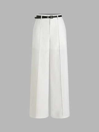 Middle Waist Geometric Pocket Wide Leg Trousers With Belt Curve & Plus