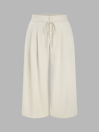 Middle Waist Pleated Drawstring Wide Leg Trousers Curve & Plus