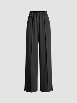 Mid Waist Solid Elastic Waist Wide Leg Trousers