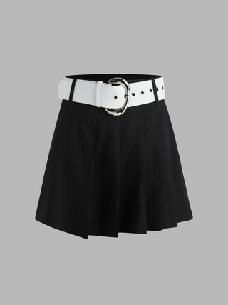 Mid Waist Solid Pleated Maxi Skirt With Belt