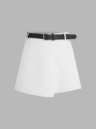 Mid Waist Belted Mini Skirt