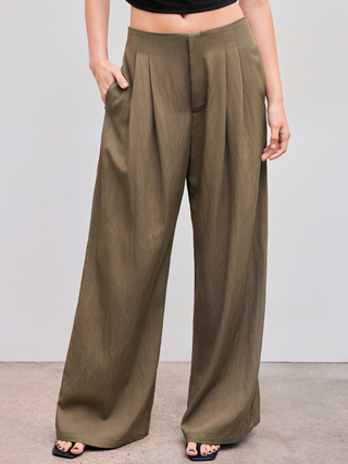 Mid Rise Solid Pleated Super Wide Leg Trousers