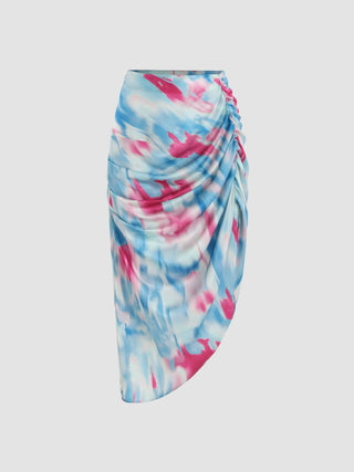 Jacquard Off-shoulder Asymmetrical Hem Ruched Top
