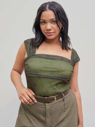 Floral Mesh Cowl Neck Dress Curve & Plus