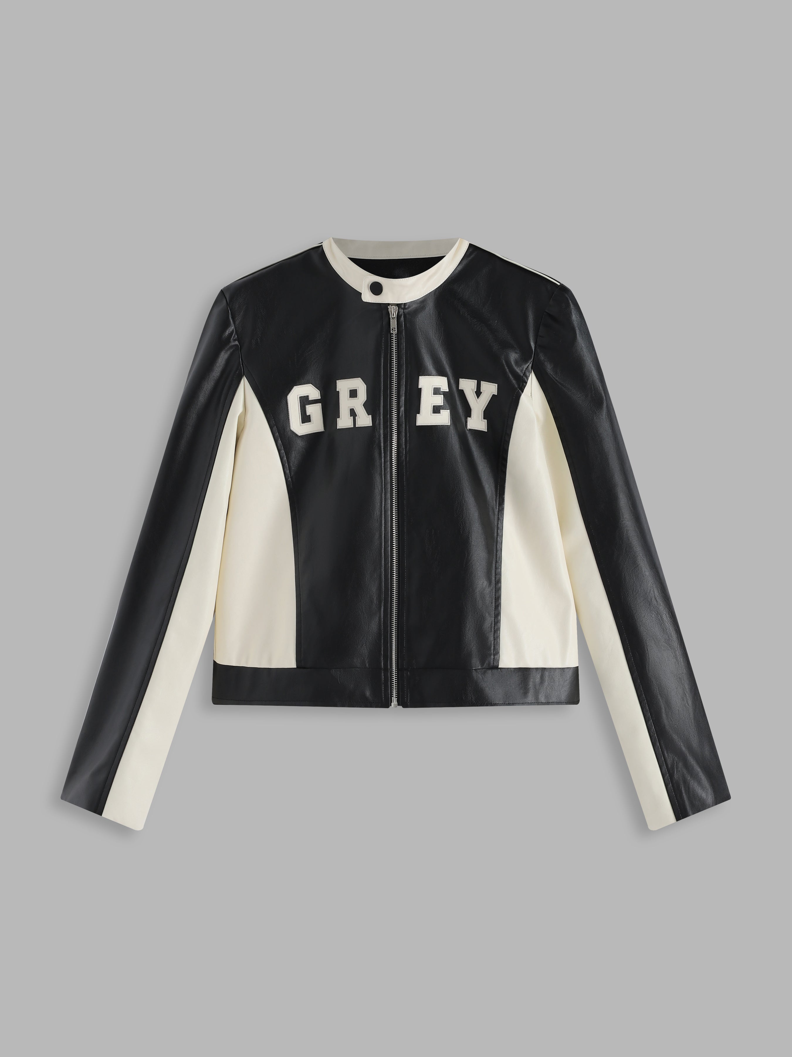 Faux Leather Contrasting Zipper Jacket