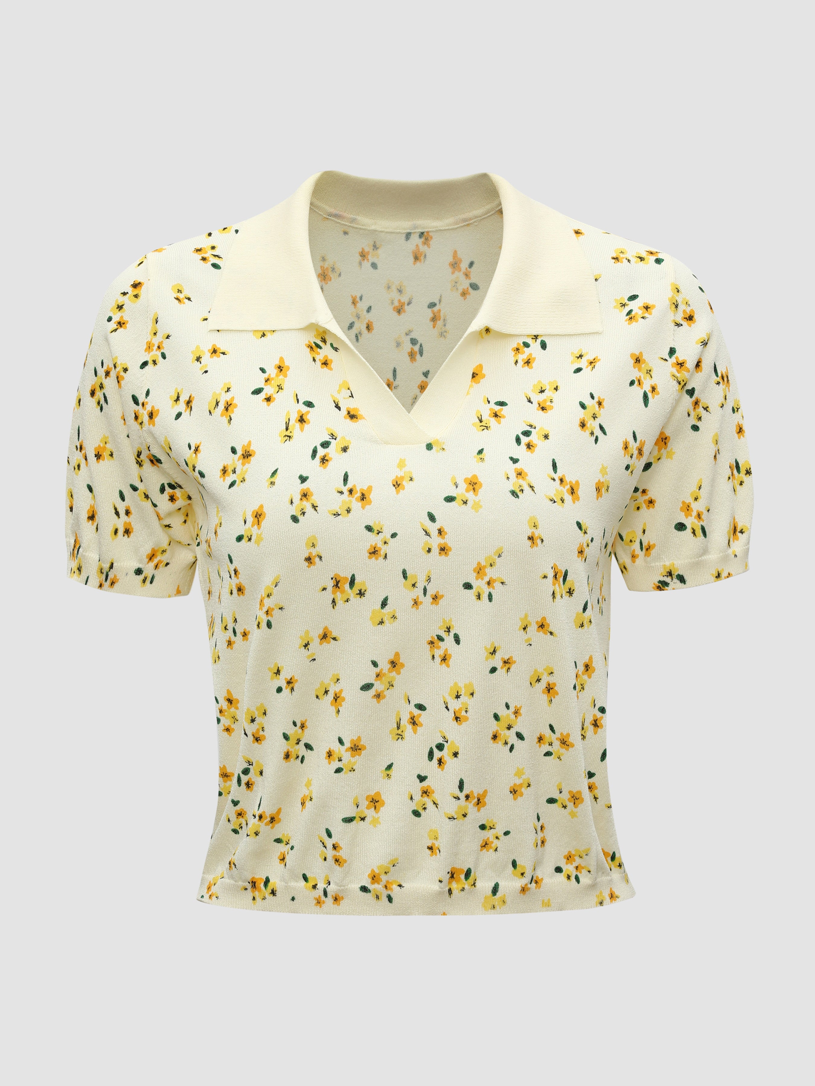 Floral Pattern Polo Top