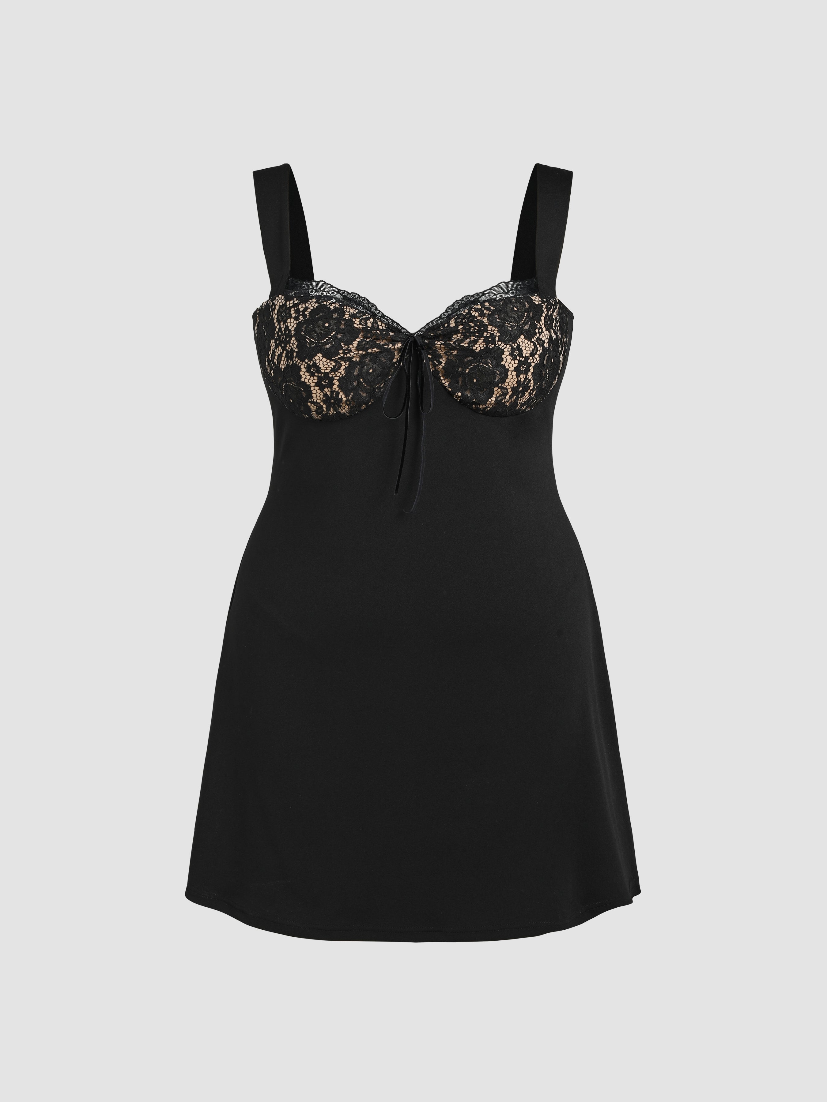 Jersey Lace Sweetheart Knotted Mini Dress Curve & Plus
