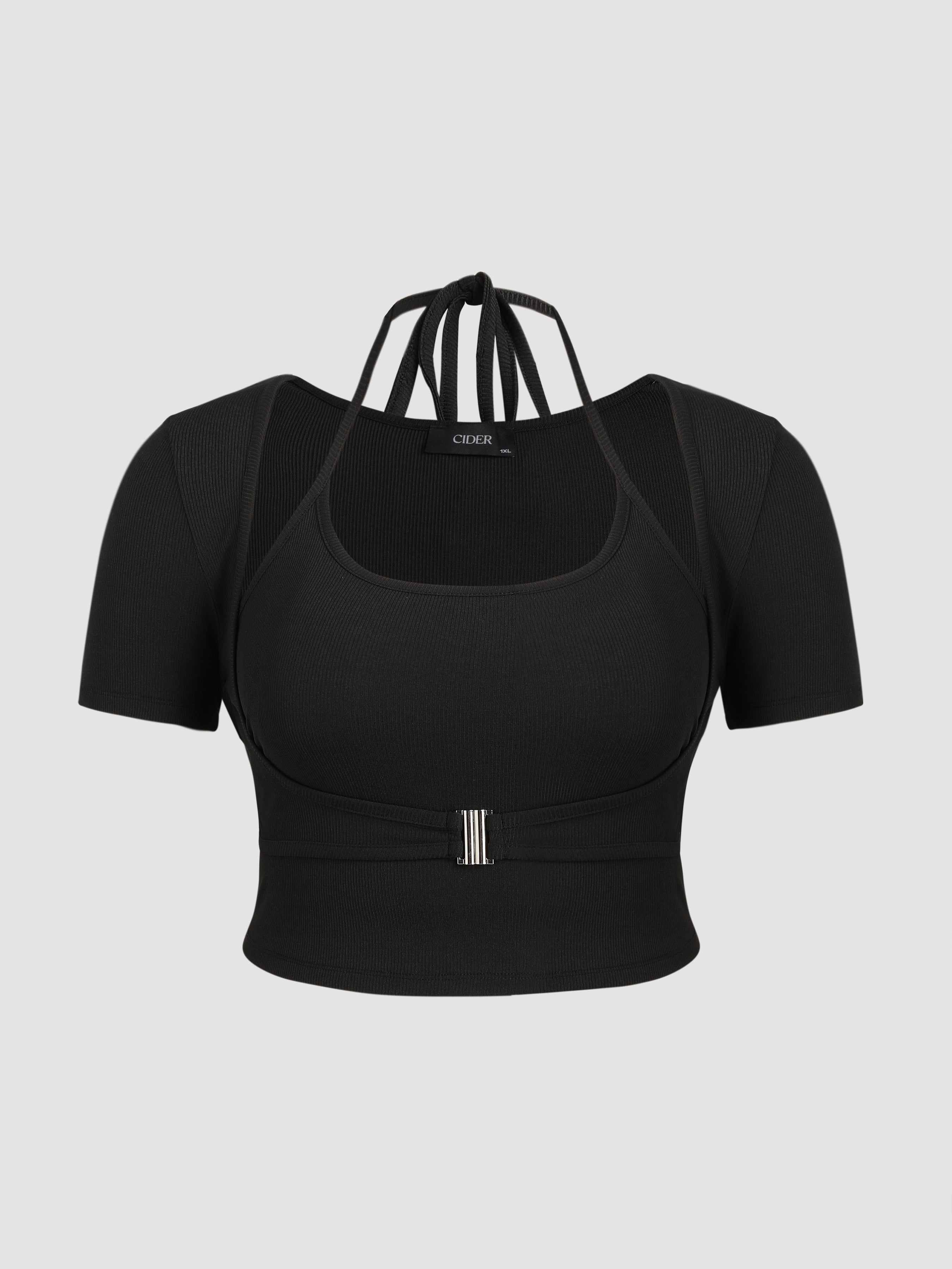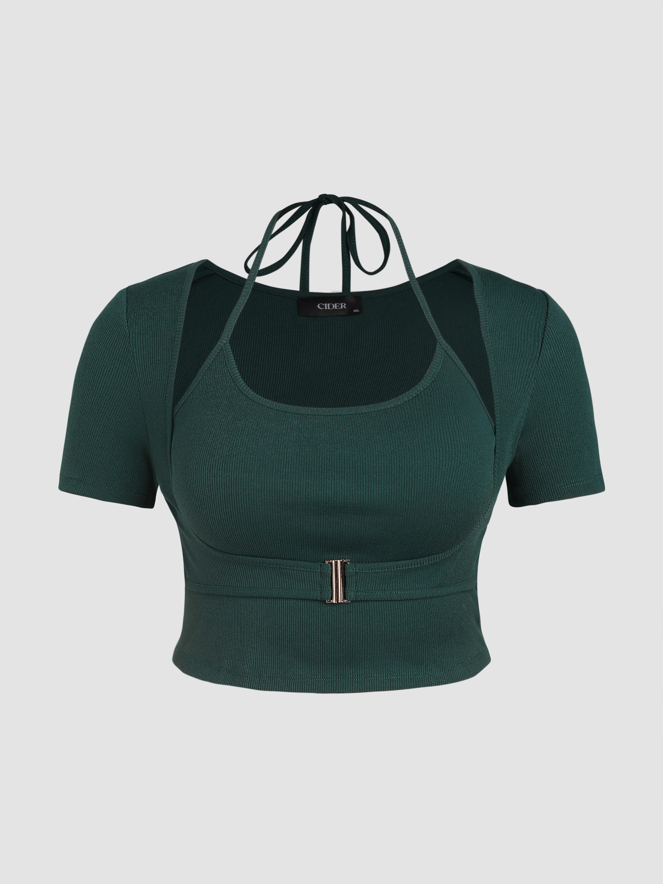 Jersey Rib Buckle Crop Halter Top Curve & Plus
