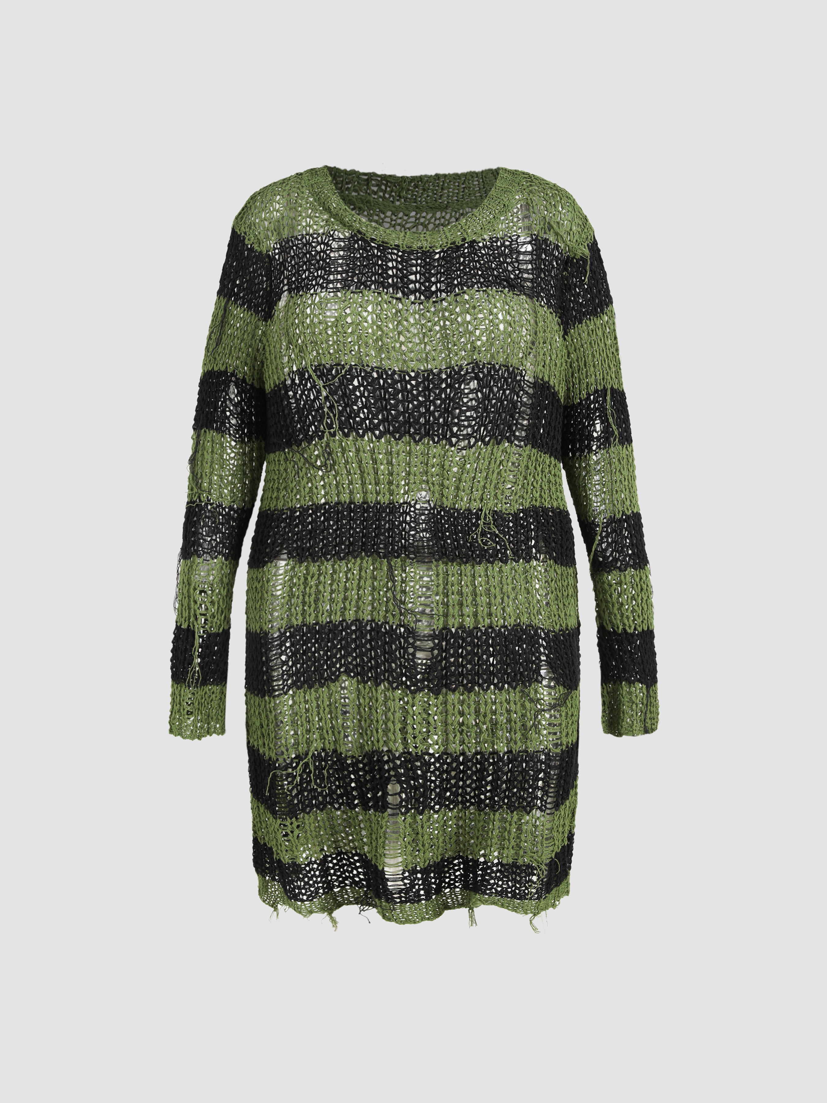 Knit Dark Desire Distressed Long Sleeve Dress Curve & Plus