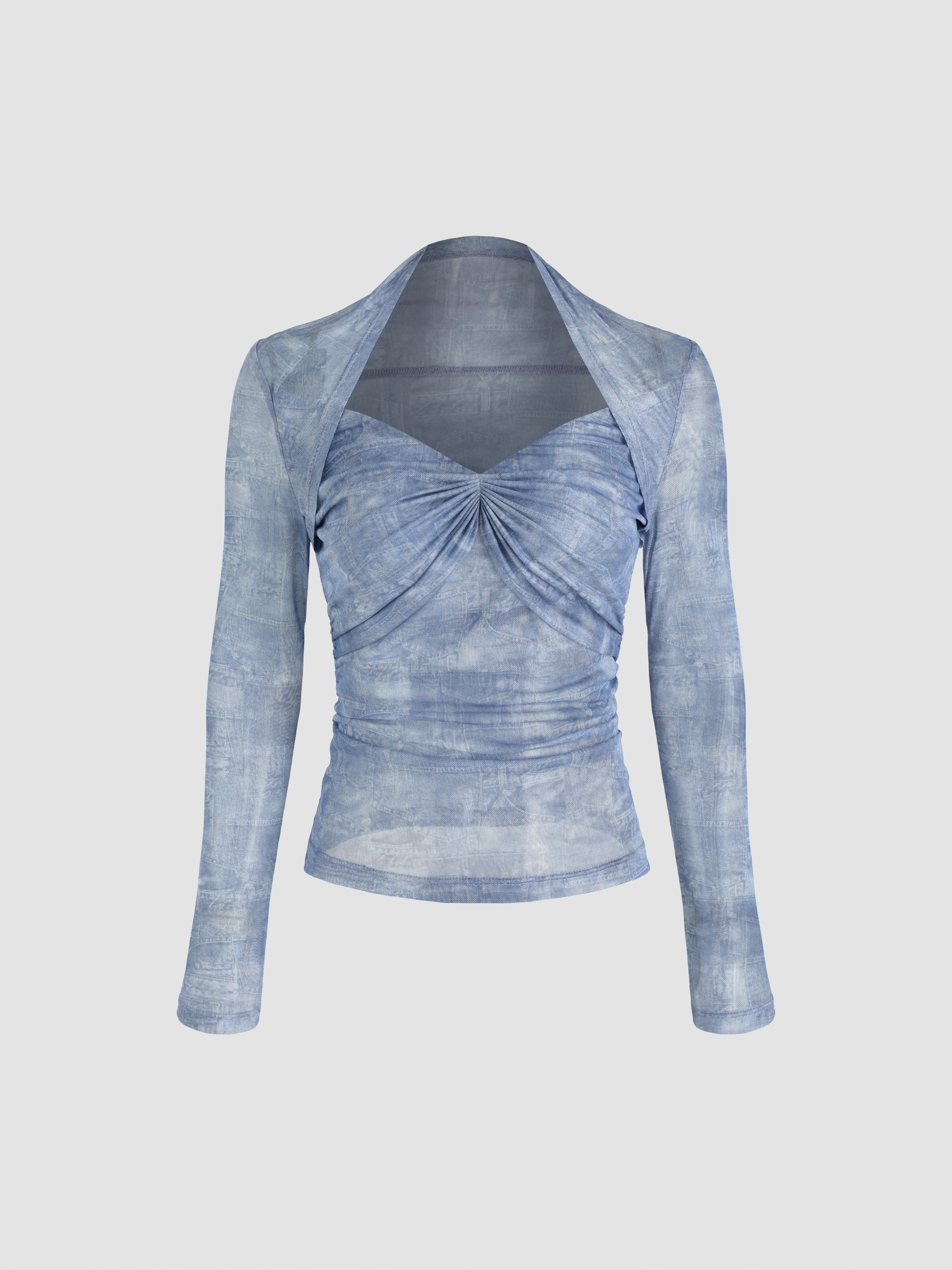 Mesh Sweetheart Abstract Twist Long Sleeve Tee