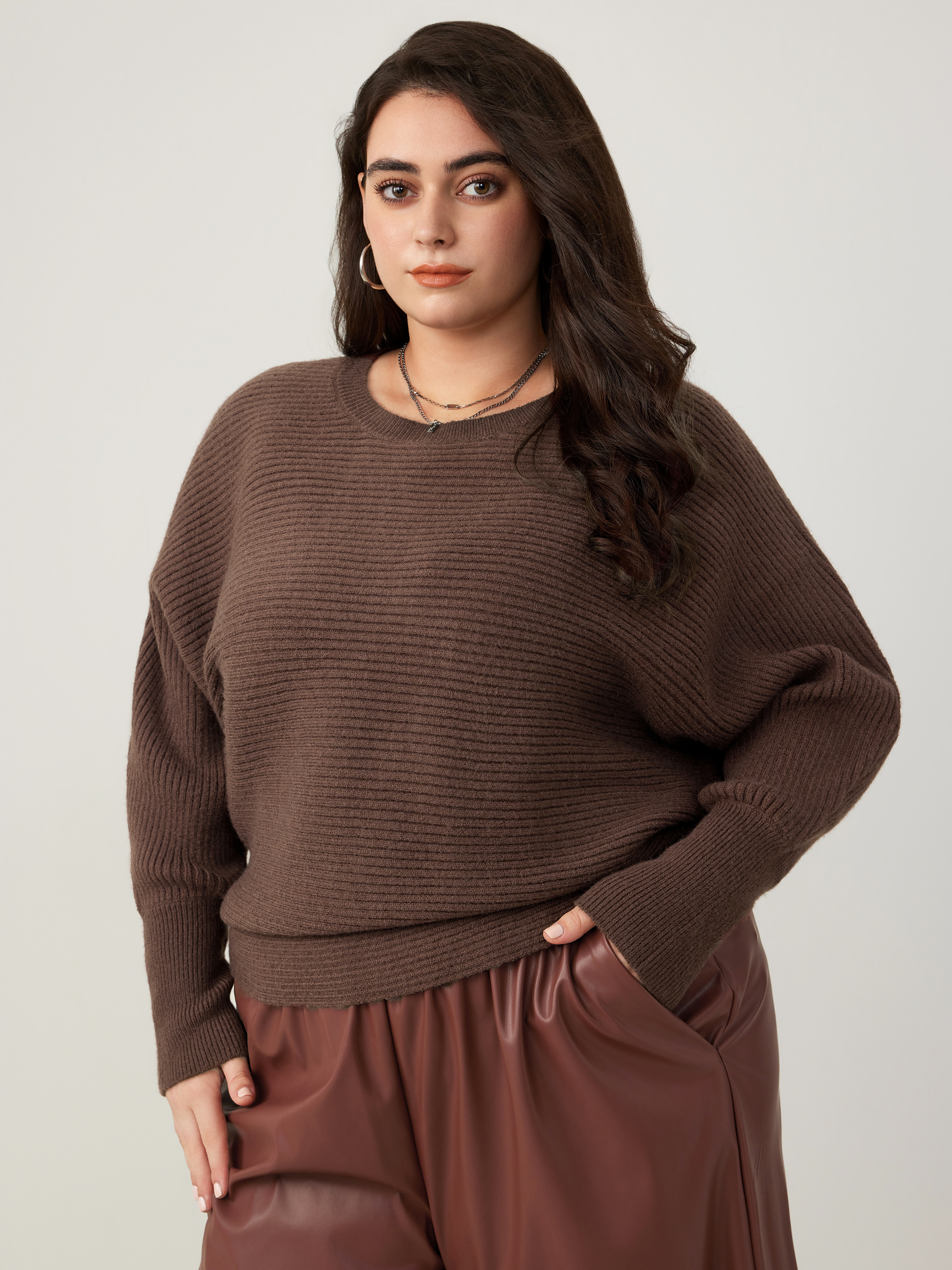 Round Neck Knitted Lantern Sleeve Top Curve & Plus