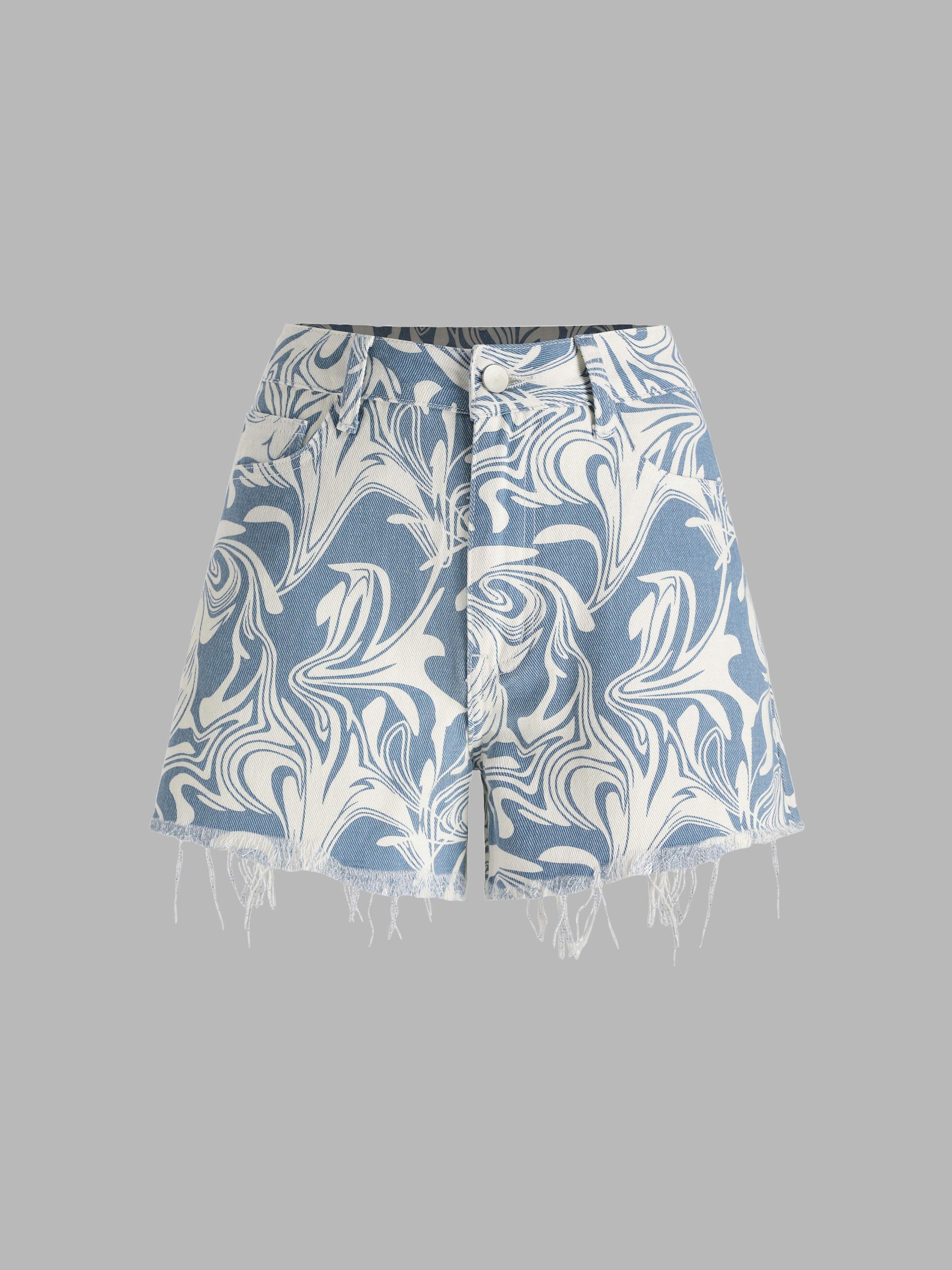 Wave Tassel Denim Mini Shorts